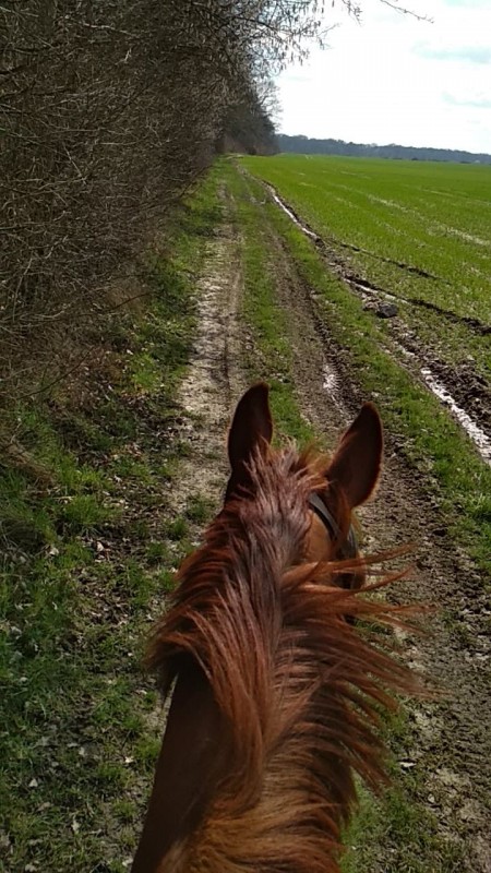 Aujourd'hui, remise en selle après plus de 3 semaines sans rien faire. On a fait ballade, 10km... Poney gazé.