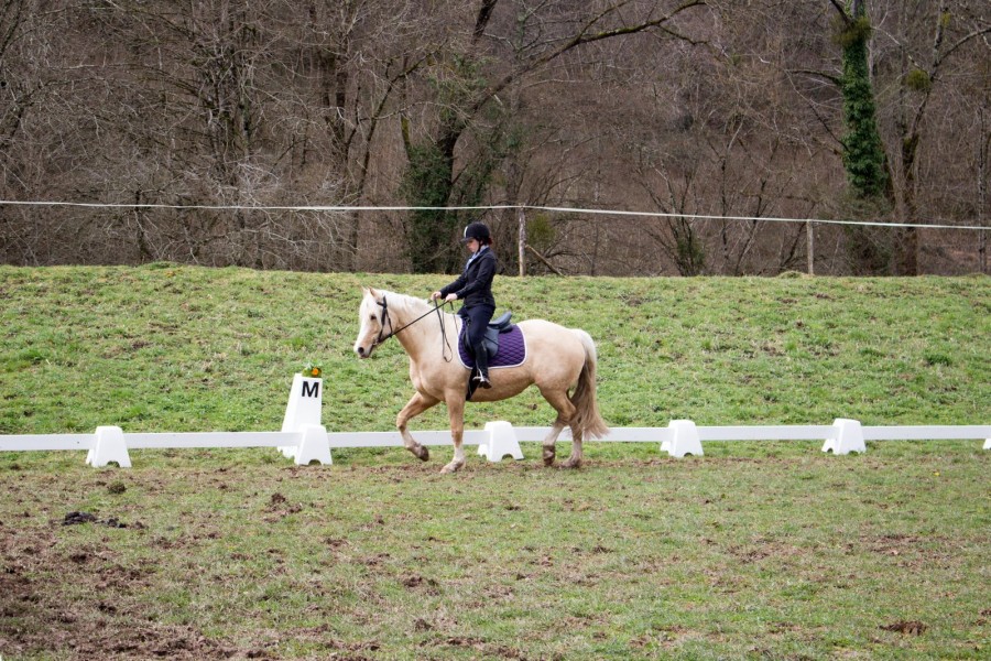 On a bossé sur quelques éléments de la reprise poney 1 - Poney élite. Tentative de diagonale au trot moyen, demi volte au galop avec demi cercle de 12m... Vraiment pas si mal