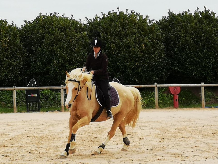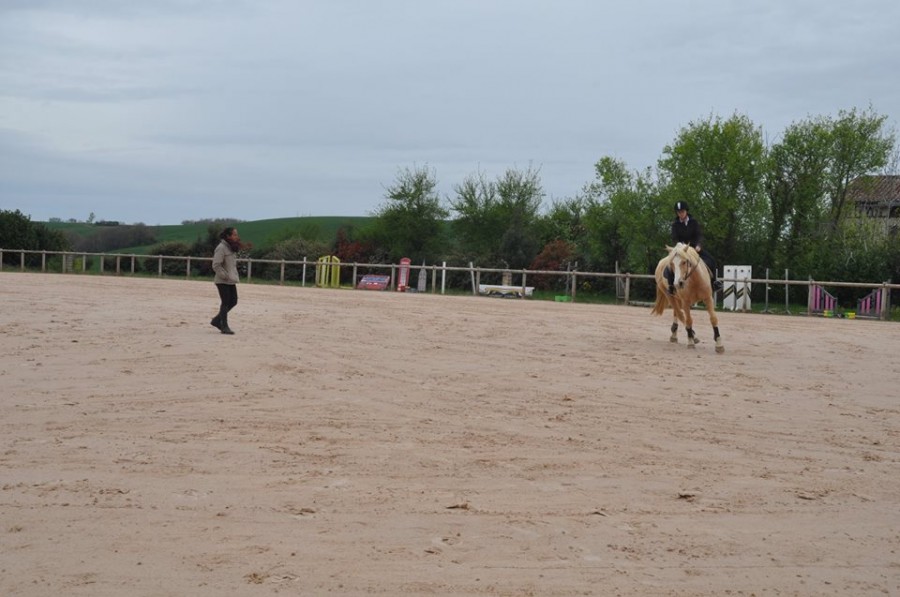 On a pu faire notre stage avec ma monitrice, c'était vraiment plaisant de travailler avec un peu d'encadrement pour faire le point. On a pas avancé c'est sûr depuis qu'on est parti des écuries, mais on a pas trop perdu non plus. L'enjeux principal reste encore de travailler l'équilibre avec des variations d'attitudes et en mobilisant les épaules pour les alléger. On travaille les transitions EED au pas et au trot, transitions EED/travers au pas.