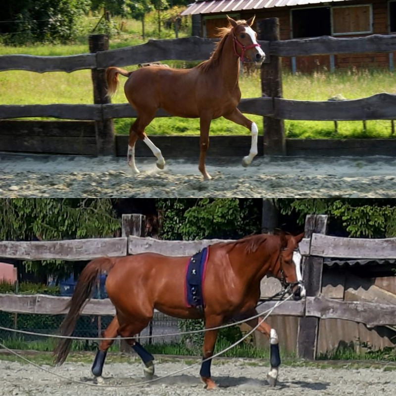 Moi je l'ai pas mal pris aux LR ces derniers temps (parce qu'à priori ça pourrait être ma selle qui le bloque donc je limite au max, j'en reçois une à l'essai cette semaine), et monté hier. Franchement je le trouve toujours bof, gêné. A main droite globalement ça va, à main gauche par contre il faut vraiment être dedans à 100% et agir en discontinu mais presque tout le temps pour qu'il arrive à se tenir. Il fait l'effort et arrive à être bien, mais dès que je lâche un peu pouf il retombe direct. Bon alors après c'est peut être juste le besoin de travail, manque de muscle et de souplesse, j’espère que c'est juste ça. Mais je n'ai pas souvenir d'avoir galéré comme ça avant, alors est ce que j'étais moins exigeante c'est possible aussi, dur dur de vraiment comparer. Mais là c'est impressionant comme il se tord, c'est bien simple il met tout sur l'épaule gauche, j'ai fait le test de lâcher les commandes, il est parti direct sur une diagonale en crabe.