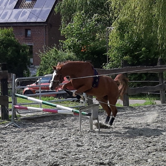 Aujourd'hui longues rênes et un peu de saut, semaine prochaine reprise du travail monté.