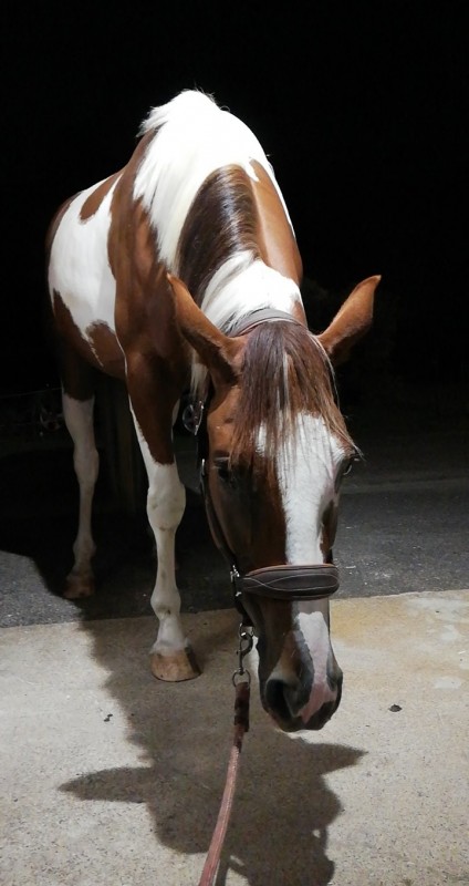 Pour le très bon, comportement toujours au top, on était 5 je crois, il dit rien. Début de séance à pied tout mignon, il a fait tous les exos nickel. Monté on a fait du trail, il a été bien sur la plupart des exos. La porte, prendre un objet et le déplacer, les barres au sol, passer sur un objet bizarre RAS, nickel. S'arrêter et reculer dans un couloir de barres, le premier arrêt était complétement foiré, je l'arrête avec rien dans les mains en ce moment à la maison, là j'ai du revenir et vraiment le bloquer devant. Mais au bout de 2/3 essais il est redevenu plus léger, donc c'est ok pour moi, idem pour le reculer, très lourd au début mais il a fini par s'alléger, donc ok (même si c'est frustrant de devoir faire ton reculer en mode débutant alors qu'à la maison c'est vraiment à l'assiette). Et globalement une jolie attitude, très basse, petite allure cool. Enfin pour du trail c'était l'attitude parfaite.