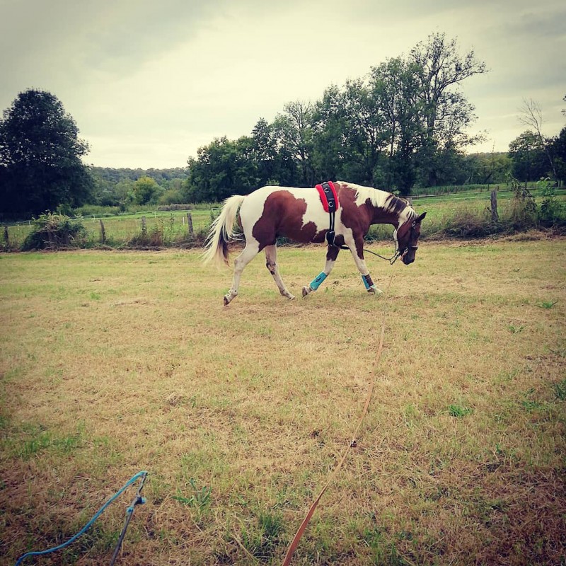 Par contre à sa décharge, quand il partait c'était bien, jolie attitude, basse, petit galop, et il se tenait relativement droit et bien plié sur son cercle aux 2 mains, ça c'est une énorme amélioration. Par contre galop/pas toujours pas terrible, pas franc, voire même parfois il trottinait et restait sourd à mes aides pour ralentir (en fait il voulait ni pas ni galop, il voulait trottiner ... -_-).