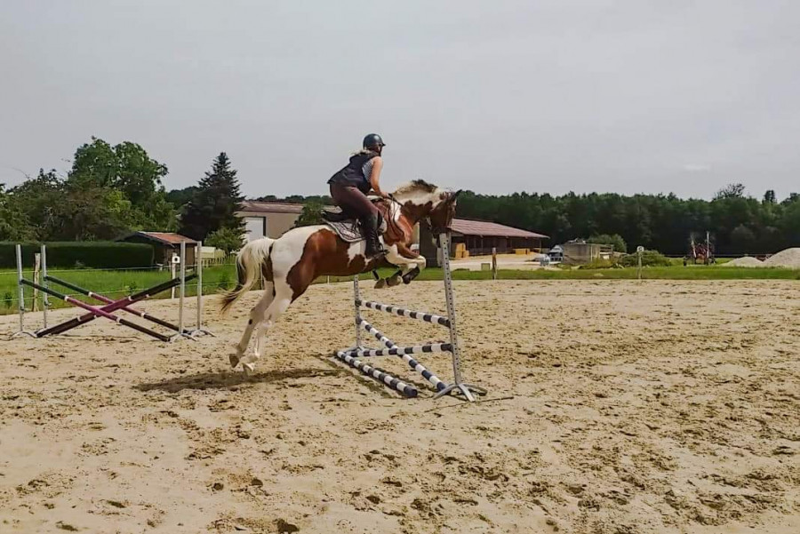 On a aussi bossé la rêne directe, il trouve qu'il n'y répond pas assez, j'ai pas trop compris parce que c'est quelque chose qu'on a beaucoup fait, mais c'est vrai que ces derniers temps peut être moins, et je pense que je ne suis pas assez exigeante et qu'il se laisse un peu vivre (il répond tranquillou quoi). On a fait du slalom en demandant de se pousser aussi, le truc typique où on se fâche lui et moi à la maison. A droite effectivement (qui est ma ou sa mauvaise main à pied, ou les 2!) il était relou, venait me chercher, se poussait difficilement, enfin je l'emmerdais quoi! Le prof l'a pris 5 minutes, je l'ai rien vu faire d'autre que moi, et pourtant j'ai récupéré un poney métamorphosé, nickel l'animal. Ça fait plaisir, je pense qu'il l'a bien compris et qu'il sera capable de m'aider si j'ai des périodes difficiles avec (et même sans attendre que ça devienne trop difficile!). Puis c'est cool de voir que le poney va très bien, c'est moi qui ait besoin de progresser! Quelque part tant mieux, moi ça me va. Même si honnêtement hein, c'est hyper frustrant de voir que tout est si facile pour le pro et si compliqué pour moi!