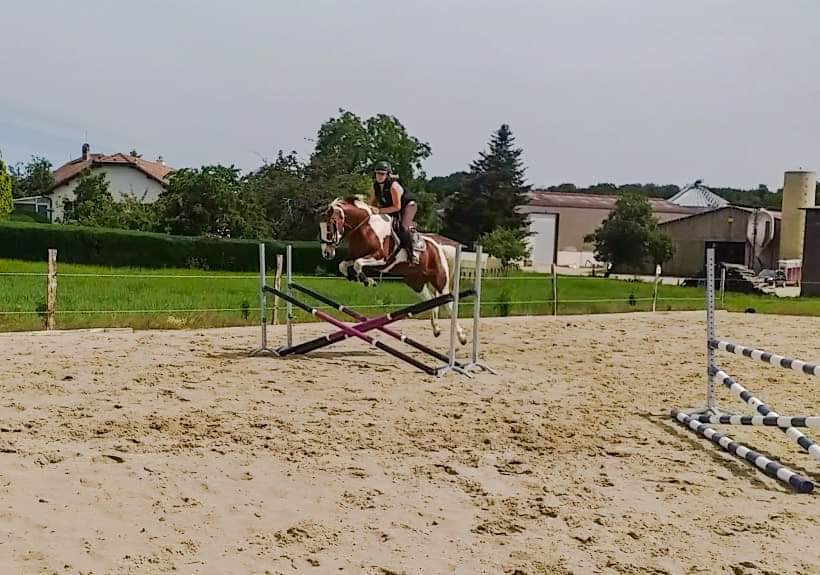 Après à cheval on a fait pas mal de petits exercices, beaucoup de cercles et de 8 en travaillant le pli, de l'escargot, de la rêne directe pour chercher les hanches ... Rien de nouveau mais des choses que j'aime bien travailler à la maison, donc là c'était parfait de faire ça en cours. Un peu de galop, où il m'a scotchée! Il commençait à être bien rincé, je pensais que ça allait être compliqué, hé bah pas du tout, il est parti au taquet aux 2 mains! Merci poney pour cette magnifique démonstration