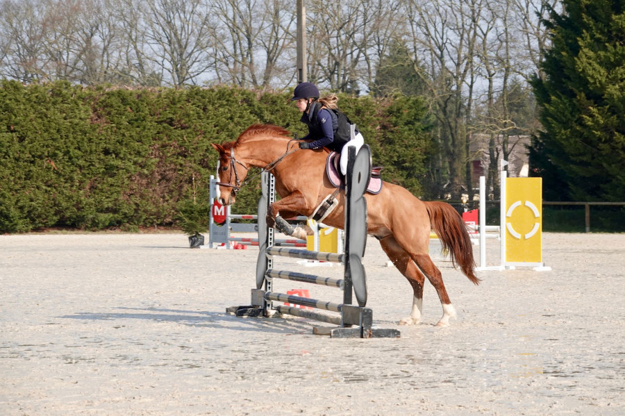 Du coup, j'ai engagé terrain la club1, je remet le filet et go, un vertical et un oxer et j'y vais.