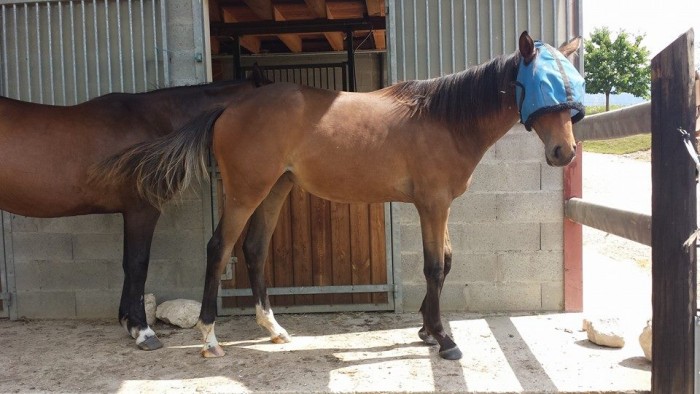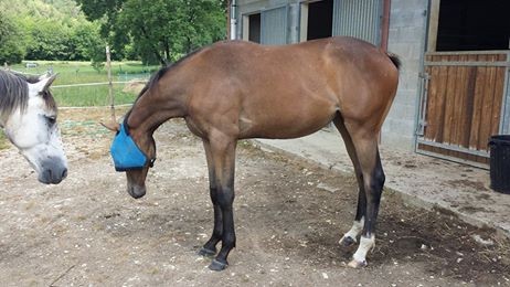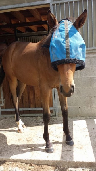je l'ai retrouvé en train de jouer avec le fly mask de son pote qui trainait par terre (me demander pas pourquoi).
