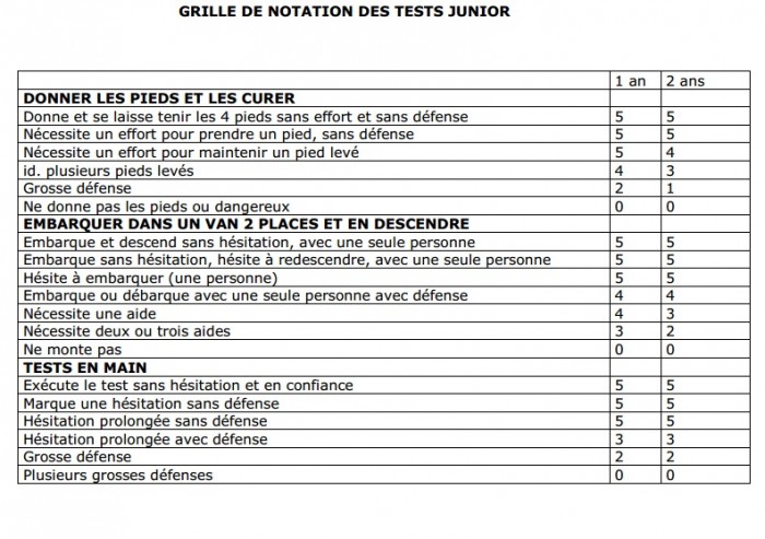 il y a différente grille de notation en fonction des âges : 1an, 2an pour les juniors, puis d'autres pour les montés.