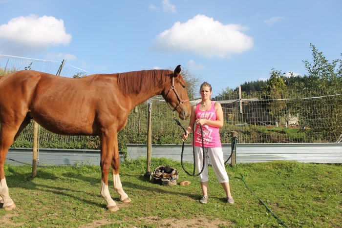 Dans les manipulations de base j'inclue aussi le respect en main et en liberté dans le pré et les balades en mains, pour pouvoir lui montrer beaucoup de choses en sécurité.
