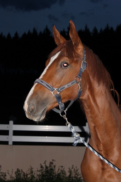 nom: Horizon de la Chapelle (robe: Alezan, possible Dominant White ou Sabino)