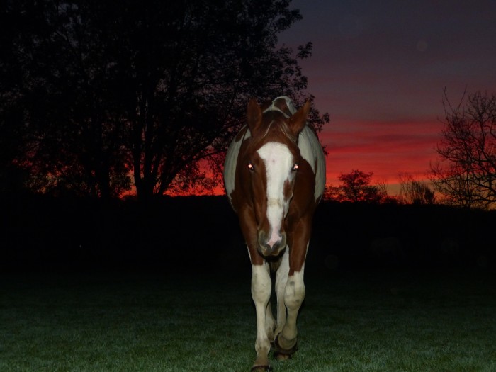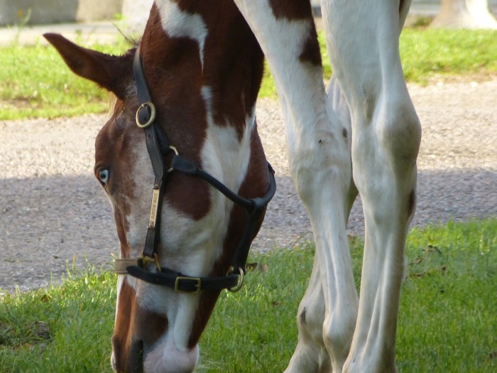 nom: Horizon de la Chapelle (robe: Alezan, possible Dominant White ou Sabino)