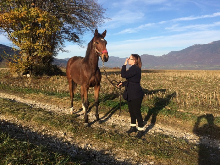 chouchou adorable, on a longé une pature pleine d'enormes vaches salers, elle etait emue mais toujours tres respectueuse de sa place et de mon petit corps