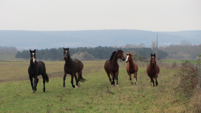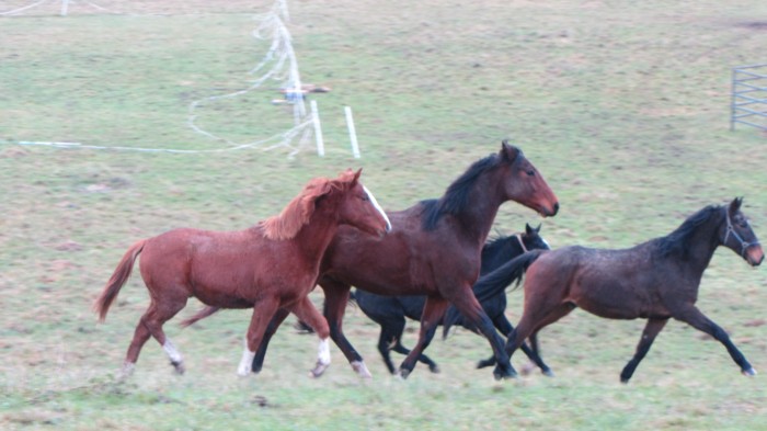 Pis finalement ils ont fait leurs caïds, les hongres sont très sympas, la jument un peu pisseuse, elle l'a latté 2 fois dont une un peu violente mais j'ai été voir après: pas de bobo!! Il a le cuir solide mon loulou