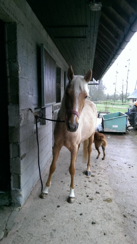 Il a eu sa ration, pansage: j'ai pu reprendre le postérieur gauche qu'il m'a donné gentillement. Le droit il l'a levé, j'ai félicité et j'ai laissé la dessus...
