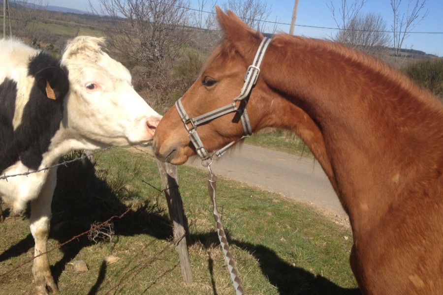 Je suis arrivée au pré, ils se sont tous ramener au galop... pour aller boire! Du coup j'ai récupéré Django tout humide de sueur, il avait même de l'écume au niveau du passage de sangle... je les soupçonne d'avoir fait les fous avant que j'arrive!