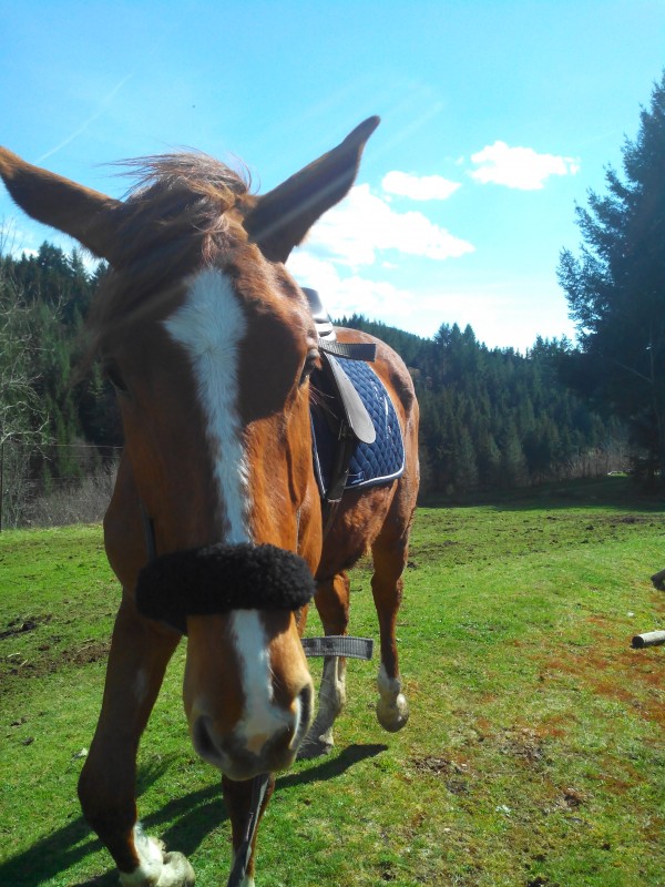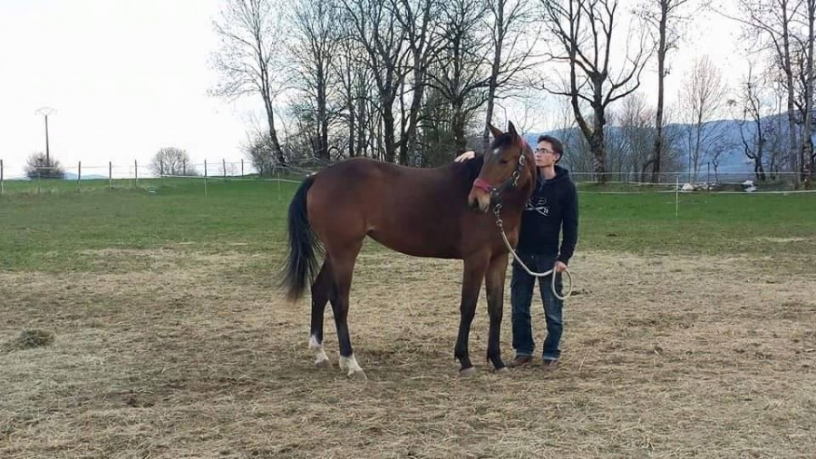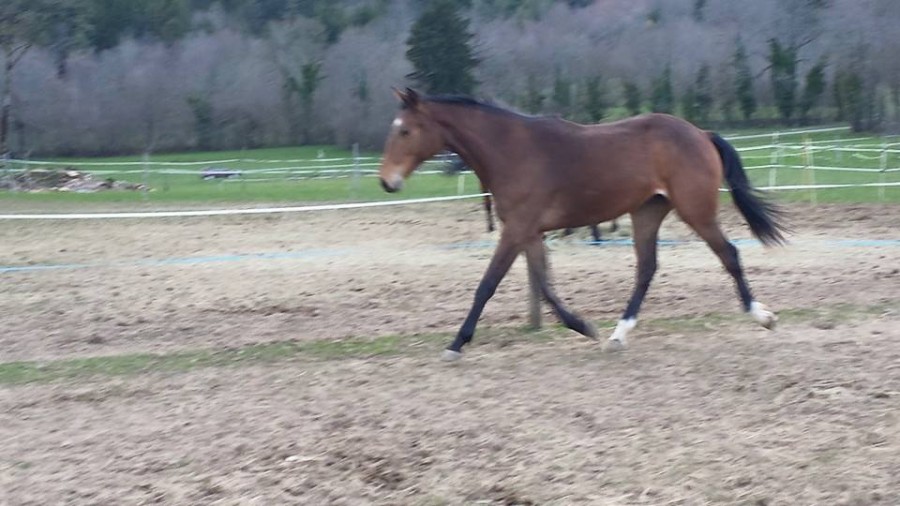 -pour l'instant il n'a presque pas d'herbe, mais il devrait y être bientôt et il a foin à volonté
