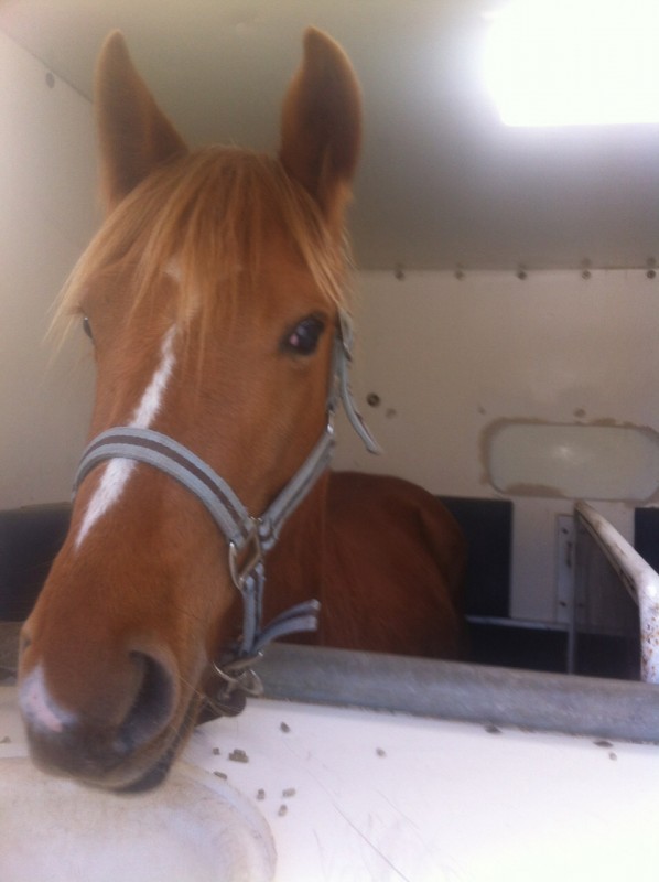 Le transport s'est bien passé, à part les premières centaines de metres où il bougeait beaucoup, et pour cause: il s'était pris un antérieur dans la longe.