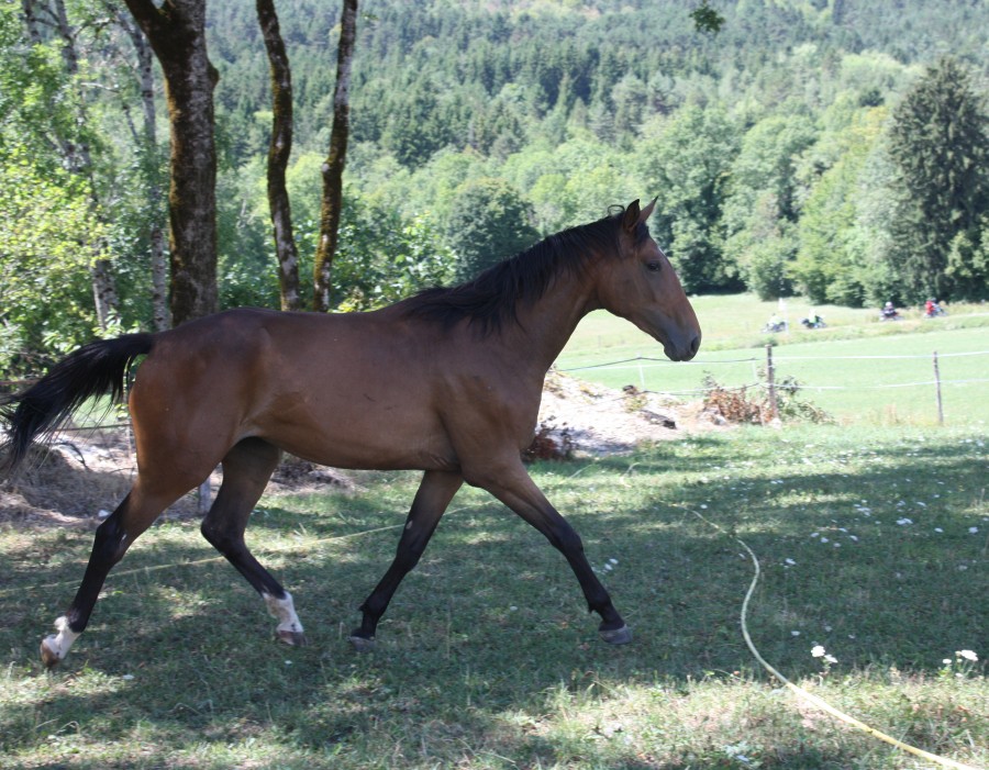 Heureusement, Ferentina qui ne l'avait jamais fait a été bien sage. Mais autant dire que trot comme ça, à peine arrivée, toute perdue dans un manège complètement fermé, elle n'a pas du tout développé ses belles allures. (ah oui, après il lui a quand même reproché d'être trop nouée devant et de ne pas s'être libérée. Ben oui, dans ces conditions...).