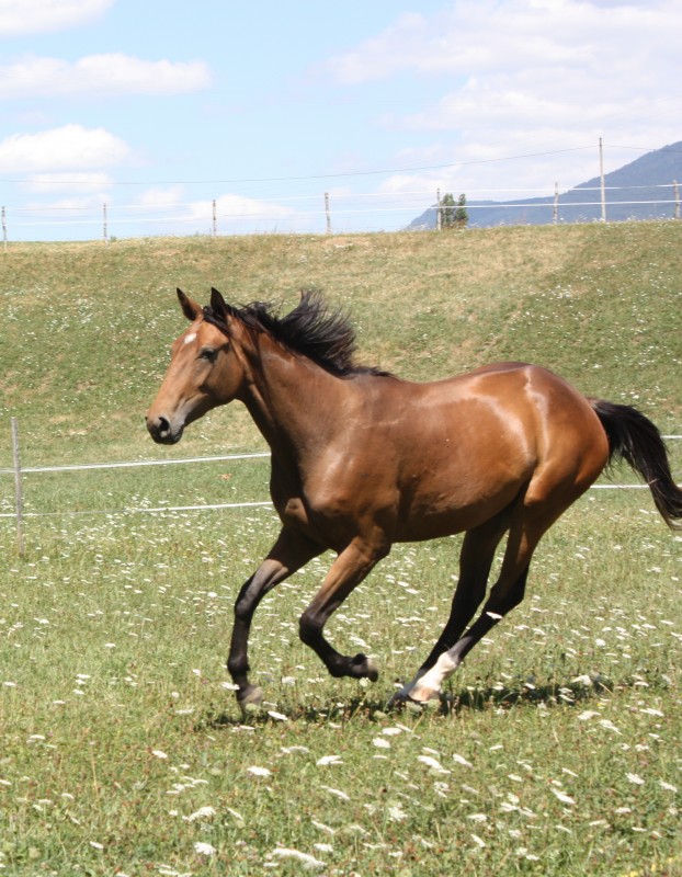 Et il m'a fait tout un speech sur sa croupe plus haute et son encolure pas développée (ben en même temps, deux ans, quoi!). Comme quoi, on dit que la croupe plus haute, c'est normal en croissance, que le garrot rattrape après, mais lui il ne trouve pas. Un cheval de dressage, ça doit être bâti en montant, alors il est obligé d'en tenir compte. Que des trucs bizarres comme ça (il a sorti le même genre de choses à la poulinière et au foal d'après, parfois en disant le contraire de ce qu'il m'avait dit).