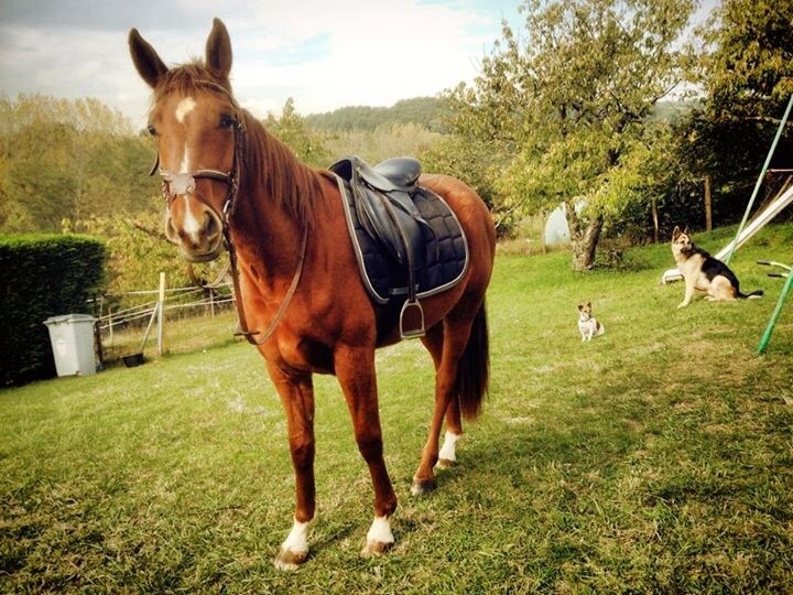 Comme il était infesté de tiques (vraiment vraiment beaucoup...), on lui avait mis du butox (je deteste ce produit mais là y'avait pas le choix...) et malgré ca y'en a encore... Mon prof me dit qu'il a jamais eu autant de tiques, on a pas eu d'hiver et il a fait très chaud cet été donc là avec l'humidité c'est la fête!