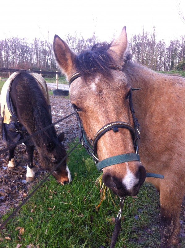 Y a juste hier ou j'ai bien cru qu'on allait à la catastrophe... En gros quand j'ai voulu fermer le pré au moment de la rentrer, elle a marché sur le fil... Grosse panique, elle essaie de se barrer mais je la tiens toujours en licol étho, là je me dis si je lâche avec la grande longe je la rattraperai pas dans le pré et elle risque de se faire mal... du coup je tiens bon, je me suis fait trainé, par chance je ne suis pas tombé la tronche dans la terre