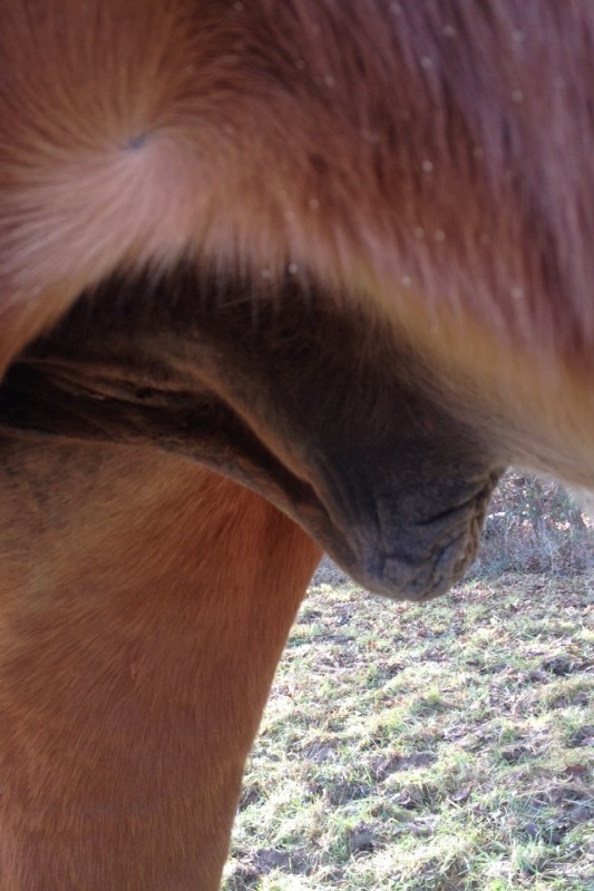Et puis finalement aujourd'hui j'y vais, elle vient à la porte tout de suite, je lui file son orge puis des carottes, je reste un peu dans le pré à rien faire, du coup elle vient avec son gros nez et on fait des selfies