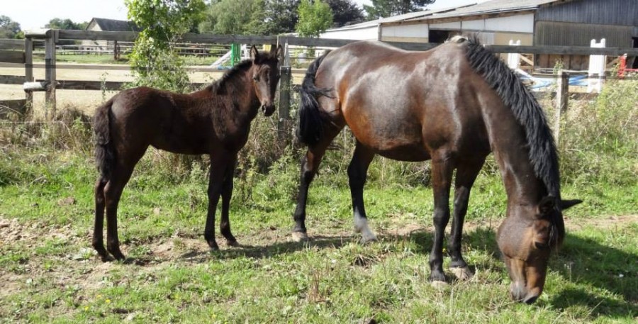 Douce Eure d'Hélanie, PFS par Rococo du Thuit et Niéma d'Othon. Elle est déclarée alezan brûlé ... Mais j'en doute très franchement, le véto devait loucher ou je ne sais pas ...