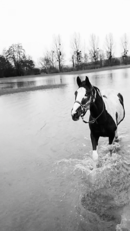 Sinon j'ai un cheval croisée poisson je crois , chez nous nôtre rivière : la Saône a bien débordé cette semaines et durant nos balade il ne peut s'empêcher daller patoger et galoper comme un tarée dedans il me fait bien rire ( quelques photos a venir