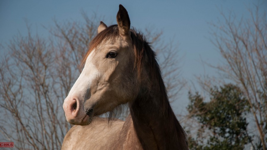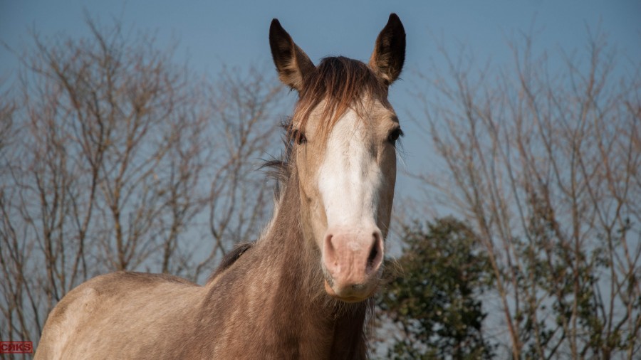 nom: Horizon de la Chapelle (robe: Alezan, possible Dominant White ou Sabino)