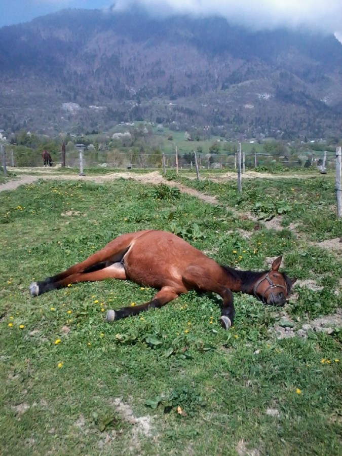 Non pas de soins Il vit H24 au pré, donc il va marcher tout seul. On croise juste les doigts pour qu'il ne me fasse pas le fou à courir partout. Bon, à priori, il doit être calmé pour quelques jours quand même.