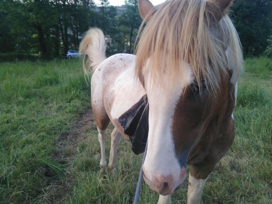 Il n'a mas eu peur des scratch des sacoche et j'ai put facilement lire ma carte . Même au trot , il avance droit , rênes lâché et je lis mon chemin .