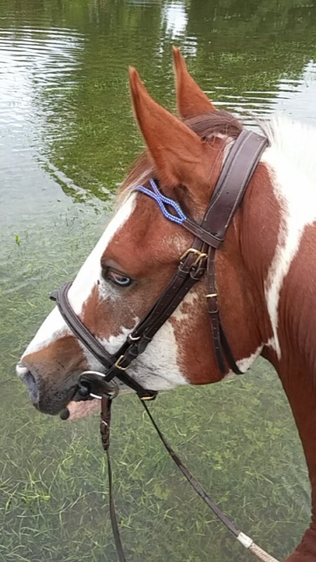 j'ai recu son petit cavecon souple, il va pas trop mal, ca lui a fait bizarre d'etre attachée par le dessus du nez mais elle a survecu a la nouveauté