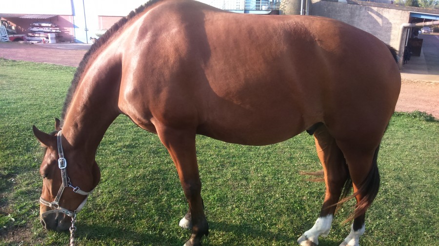 nom: Horizon de la Chapelle (robe: Alezan, possible Dominant White ou Sabino)