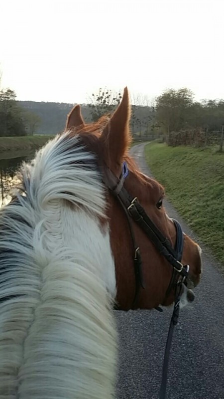 J'ai pas fait grand chose, même pas de galop. J'ai juste remis un peu les codes, quelques flexions, et retour aux écuries !