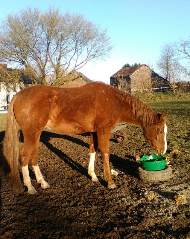 Toujours le même problème pour partir de la maison. J'ai détendu gentiment dans le rond de longe, et ensuite dehors. Le montoir à été gigotant (je me dis avec le froid ça peu y faire), et on commence à partir, a peine 20m d'effectuer qu'elle recommence son bazar, secoue la tête, m'arrache les rênes des mains et fait demi tour, j'ai beau faire ce que je veux avec mes jambes ou mes mains, elle s'en fou et va même jusqu’à se pointer plusieurs fois, j'insiste pour la remettre dans la bonne direction, et rebelote, le cinéma à duré 5/10 min avec des petites frayeurs avec les clôtures en barbelés à l’extérieur....J'ai quand même serré des fesses... Je la remet dans la bonne direction une éniéme fois et la madame a decidé que c'était bon, elle voulait bien aller par là, je place mes mains et mes jambes pour eviter le zizounage de l'arrière main...