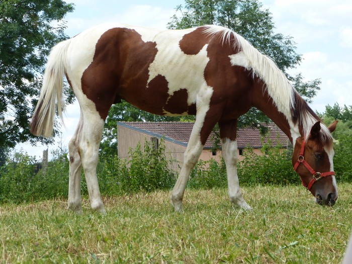 Pareil pour moi. Le truc, c'est qu'elle commence à être bien faite de l'arrière main, la croupe est ronde (limite double même) et elle commence à prendre de l'épaisseur... mais pas du tout de l'avant. Encolure et épaules riquiqui