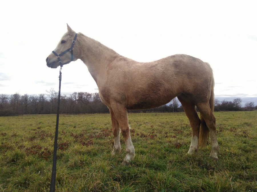 nom: Horizon de la Chapelle (robe: Alezan, possible Dominant White ou Sabino)