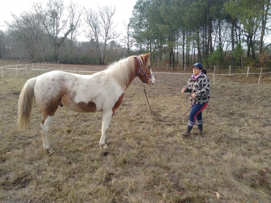 ), d'autant que dès le soir, le thermomètre redescend bien. On a refait du galop, deux tours à chaque mains. ça va aussi gentiment que la première fois. Par contre, plus dure à main gauche et elle a tendance à bien accélérer sur une partie du manège (pour compenser le fait que ce n'est pas plat, je pense, alors elle pousse pour y arriver), mais du coup, c'est un peu vite, elle fatigue, et elle fait une rupture d'allure en sortie de courbe (il faut dire que j'ai une largeur de 16m, c'est un peu chaud pour un poulain, même si elle arrive bien à tenir le galop en cercle de cette taille en longe).