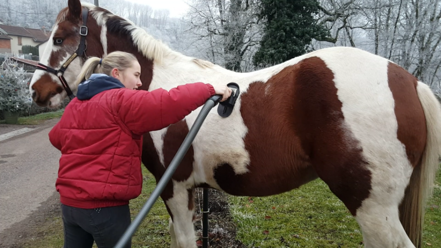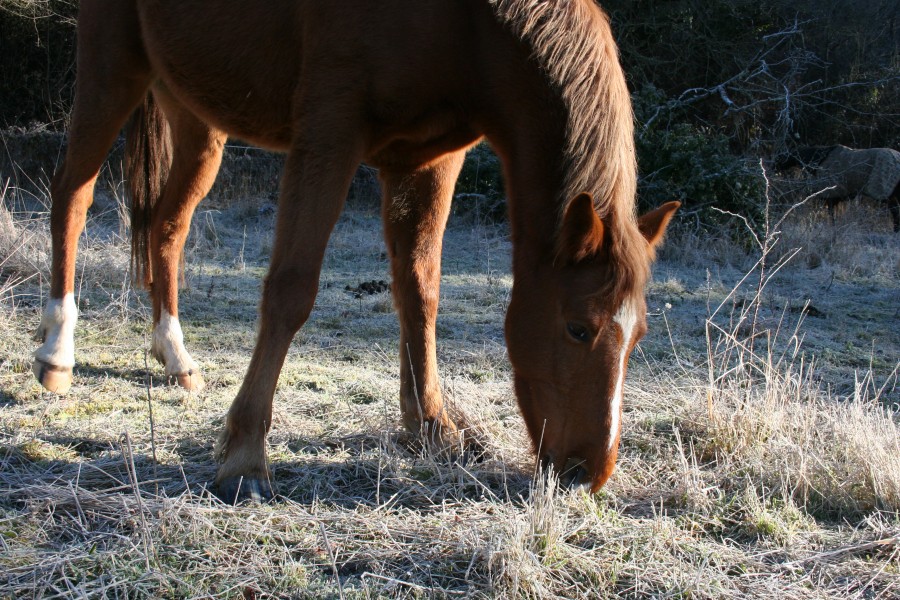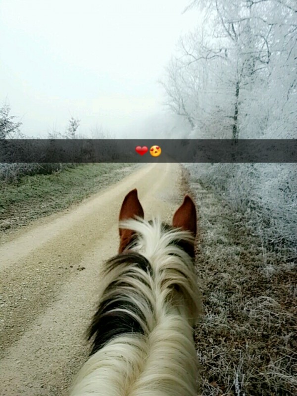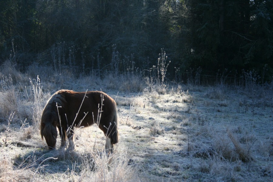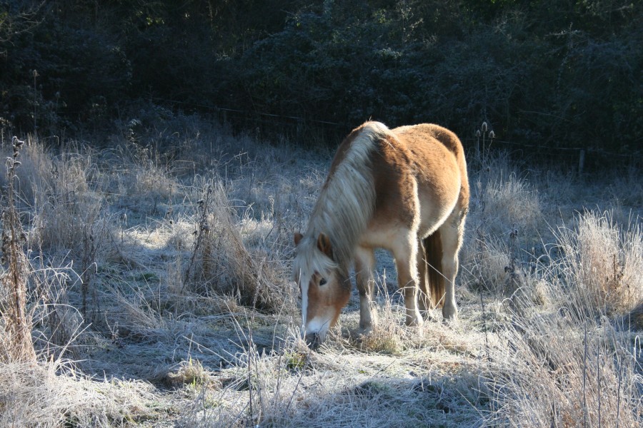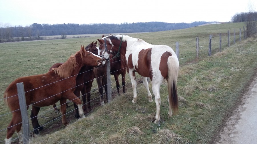 Aujourd'hui, ça c'était bien réchauffé, on tournait autour de zéro en journée. J'ai donc remonté un peu Ferentina. Pas trop, pour ne pas qu'elle soit en sueur (et ça va vite avec son poil de shet