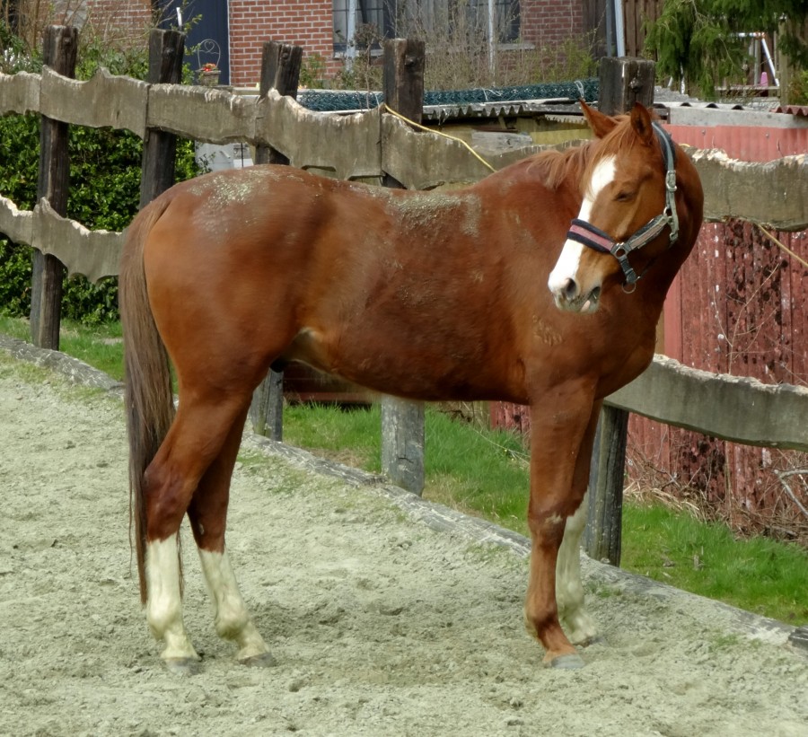 nom: Horizon de la Chapelle (robe: Alezan, possible Dominant White ou Sabino)