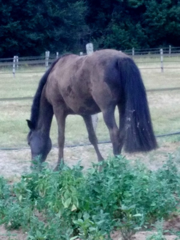 Ah, nouveauté aussi: elle a eu du spray anti-mouche. Premier essai dimanche. Pas de réaction au spray... jusqu'à ce qu'elle sente l'odeur et là, elle s'est inquiétée. Mais finalement, aujourd'hui, en prenant mon temps et même si elle n'était pas tranquille, j'ai pu lui en remettre toute seule, au box, sans l'attacher.