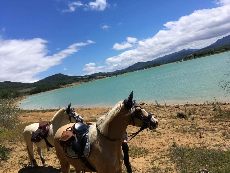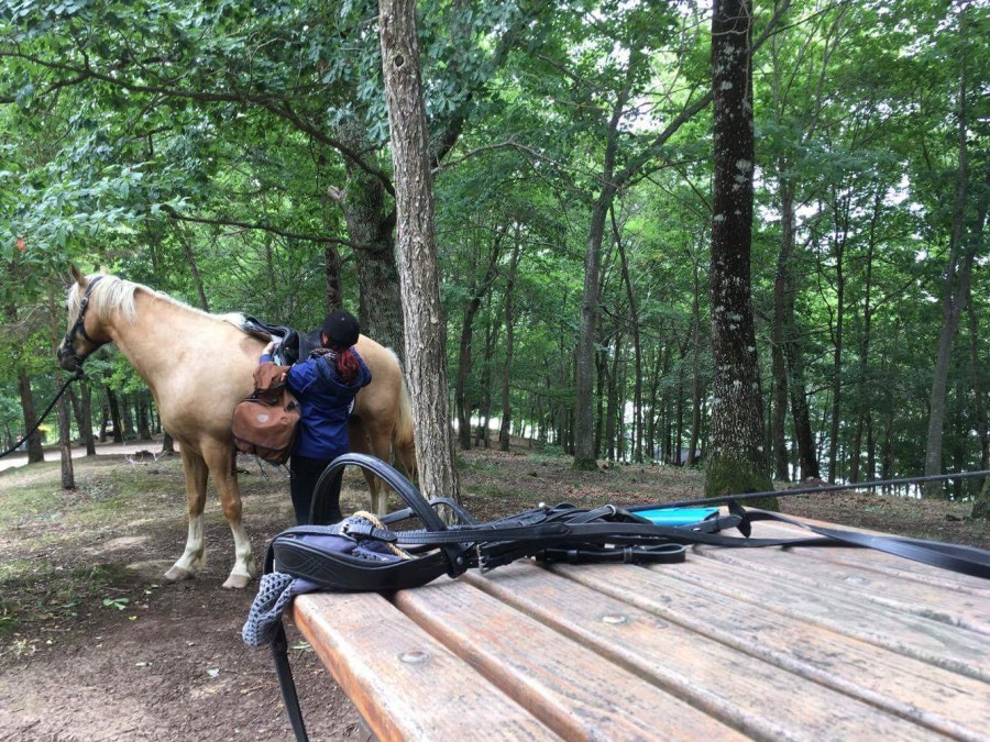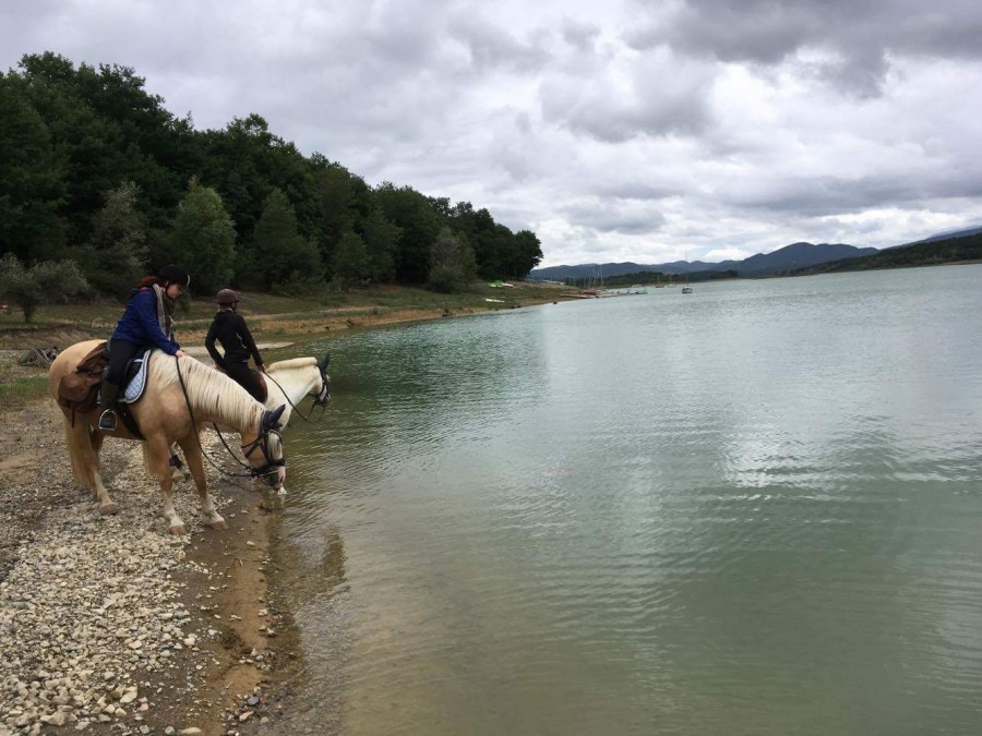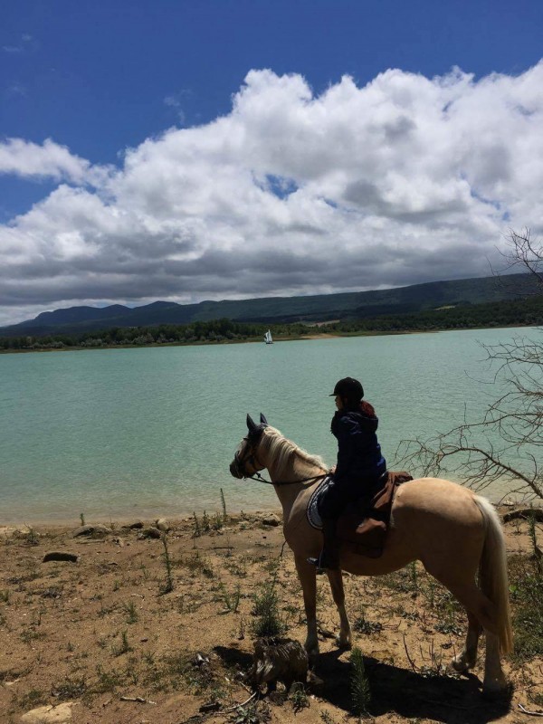 Rando topissime. 3h de pas exclusivement le matin car les sols étaient glissants. On les a un peu rentré dans l'eau d'un lac et d'une rivière. On a fait des zones de villages aussi. A la pause déjeuner, Diablesse a été exemplaire à l'attache. On est ensuite reparti pour 2h de balade. On a pu trotter et faire deux jolis galop sur un chemin bien propre.