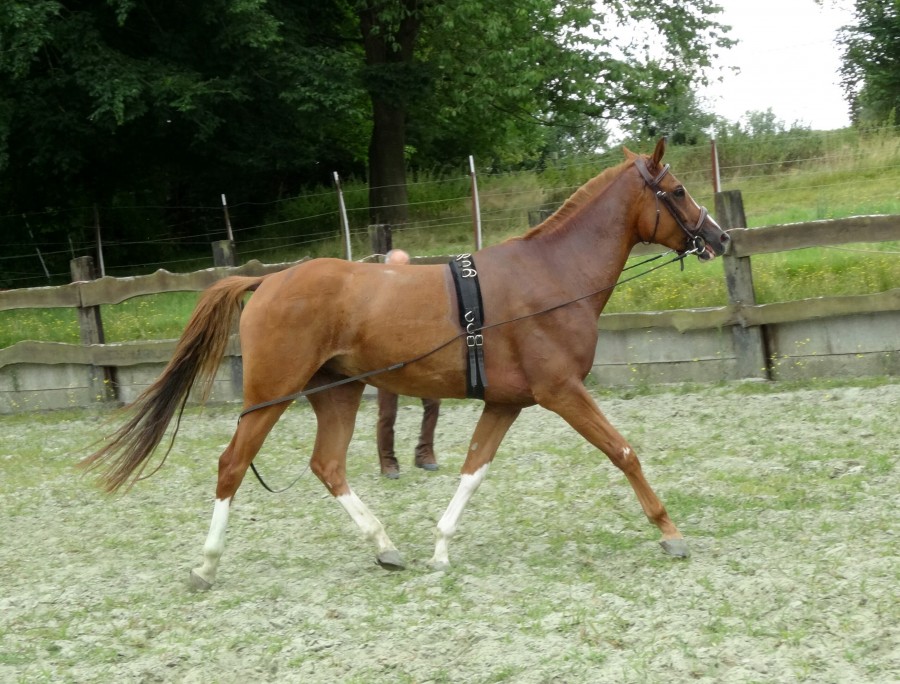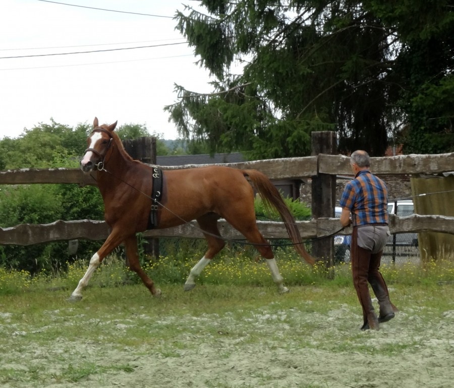 Au tout début elle se collait à lui en le suivant au trot, ils ont fait leur petit tour c'était chouette, ça s'est passé sans trop de problème. 5 minutes après elle se roulait déjà, je pense que ça va lui plaire.