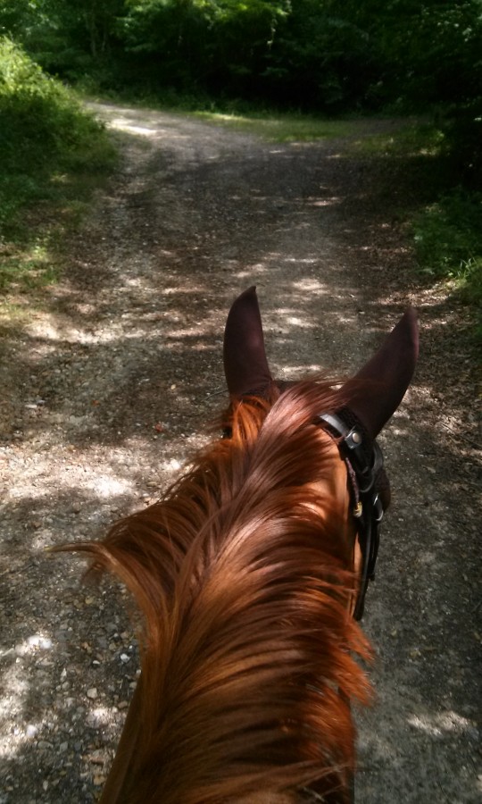 On a pas galopé. J'ai juste travaillé au trot, je faisais une pause au pas, on retravaillait au trot... Histoire qu'il arrête de se monter la tête pour galoper.