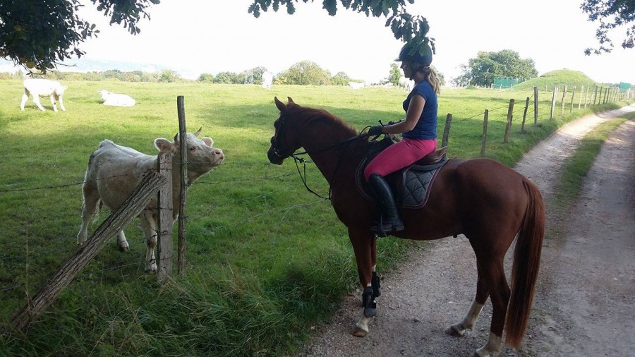 Puis hier matin cours, encore une fois c'était bien sympa, ça progresse ça progresse ! On s'est mise sur un grand cercle pour travailler pli/ contre-pli au pas puis au trot. Franchement elle était bien sympa, elle a une aisance pour comprendre les aides c'est fou je trouve ! J'ai eu l'impression que la réponse aux jambes était presque inné, c'était cool !