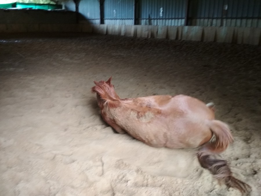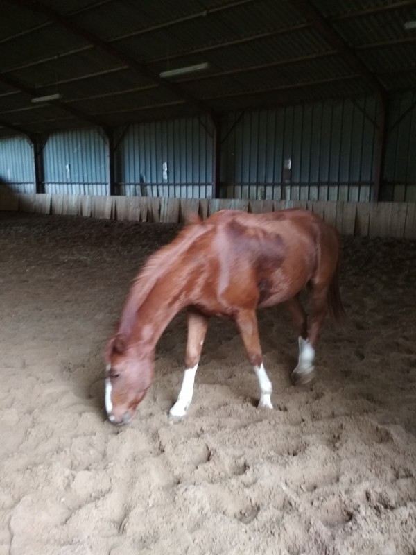 Et puis je sais pas, il s'est mis à monter en pression quand on a changé de main, il se durcit, il se remet à faire la girafe, j'arrive pas à le décontracter... J'ai essayé de reprendre à l'autre main, de souffler au pas et de reprendre, de repasser au pas à chaque fois que j'avais un cercle à peu près correct... Mais non, j'ai jamais réussi à retrouver La décontraction de mon début de séance, et il est resté braqué jusqu'à la fin. On a galopé un peu. Départs hyper mauvais où il se jette en avant (au moins il était sur le bon pied, c'est déjà ça...), il se durcit à mort, du coup je suis pas du tout bien dessus et c'est le cercle vicieux.