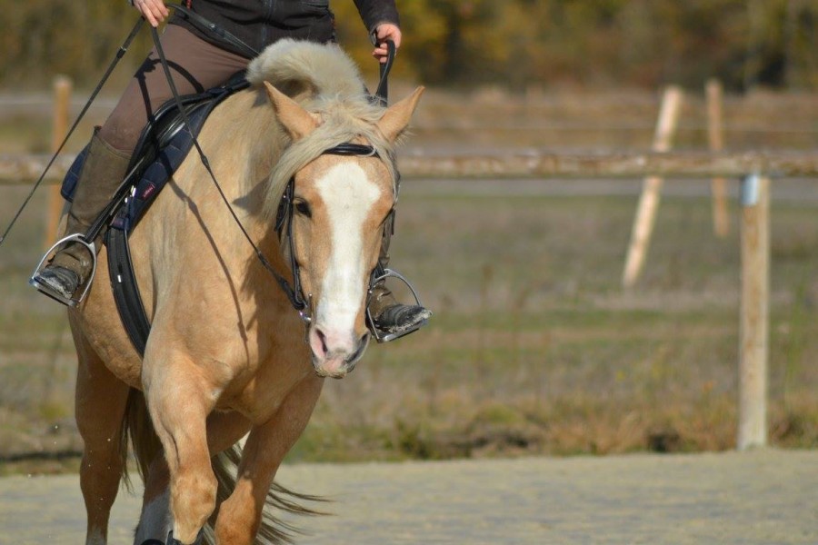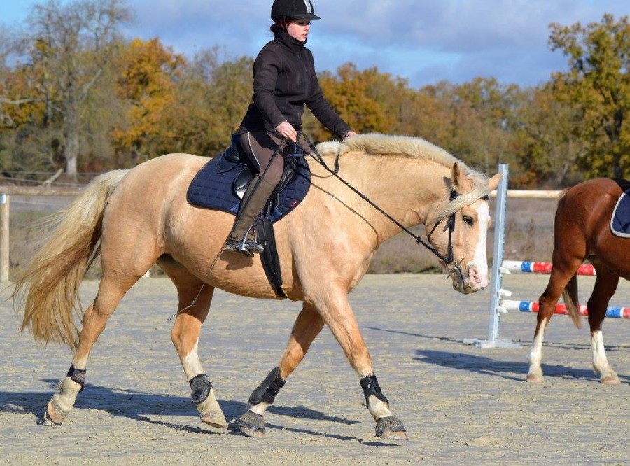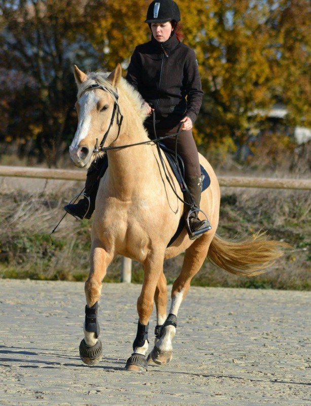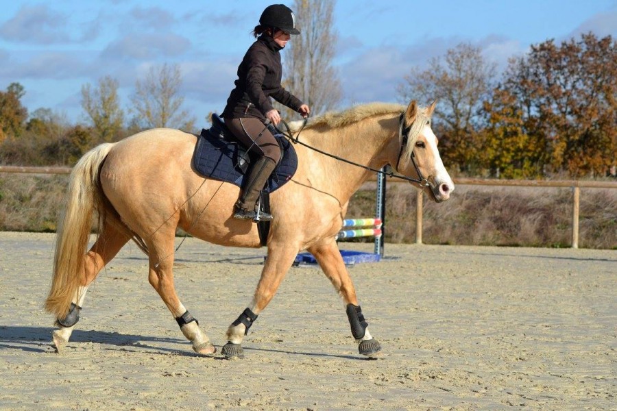 shaem welcome! ma 4 ans a commencé le travail en carriere il y'a 6 mois maintenant, a raison de 2 petites seances par semaine (+ 1 3eme en longe ou en exterieur). Elle a le dos en place au 3 allures, une attitude correcte pour son age, en place et assez stable. Elle connait bien les aides de l'incurvation, commence a dissocier le travail hanche / epaules au pas , et fait ses 1eres cessions au pas et au trot avec facilité. Au galop elle part sur le bon pied, transitionne bien depuis et vers le trot. elle sort en exterieur seule.