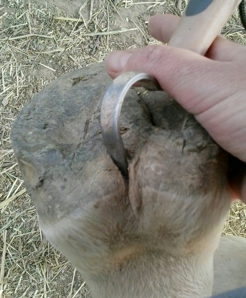 boîterie antérieur gauche dans les jours qui ont suivi, je rappelle le maréchal qui déferrère et referre et "par acquis de conscience" déferre aussi l'antérieur droit pour être sûr.....