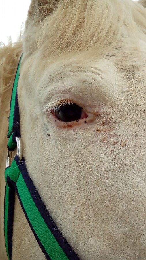 Il a toujours les yeux crotous et sur sa peau cela fait vite des petites croûtes et l'oeil souvent un peu rouge.