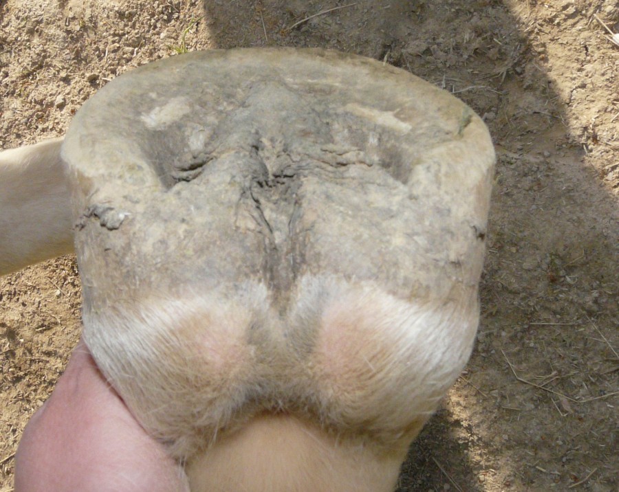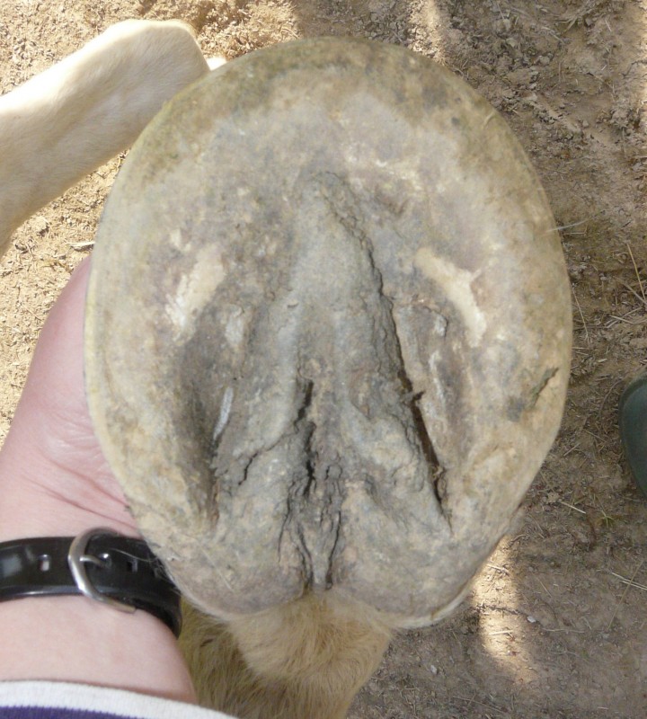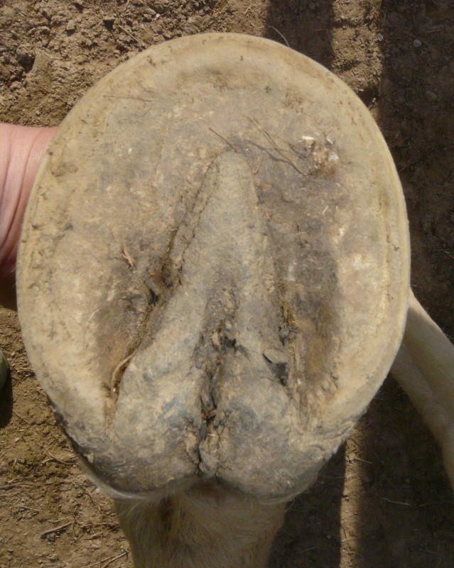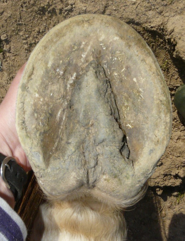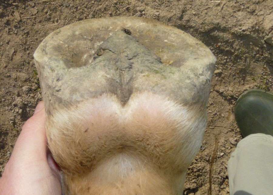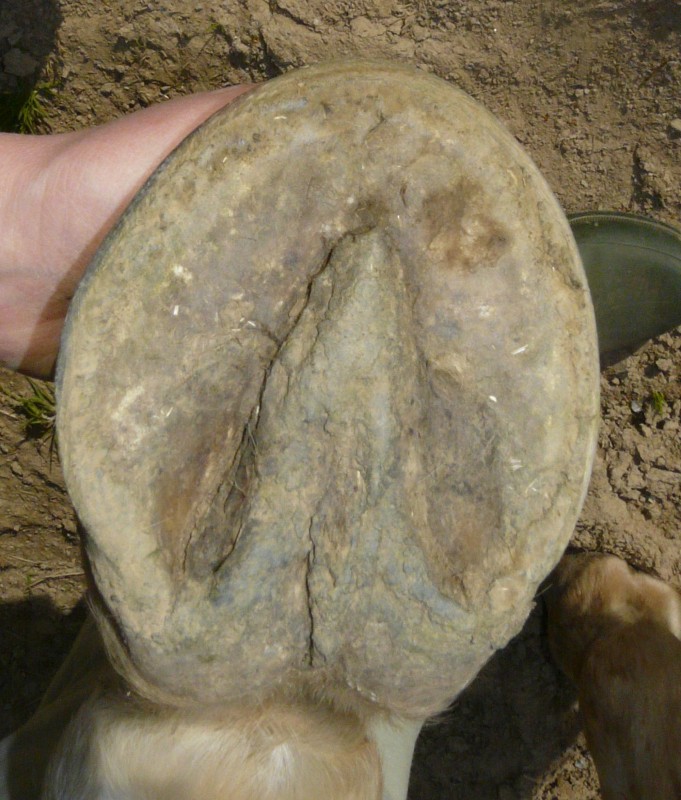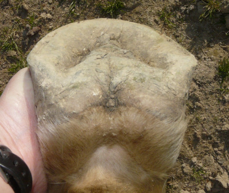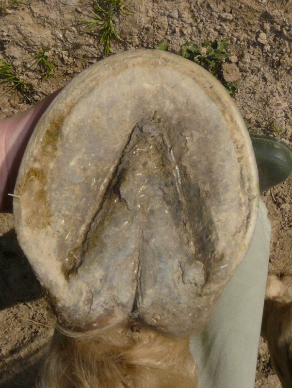 Cet hiver, avec l'humidité et ses pieds en gruyères, elle m'a fait un légère mue de sabots... du clou qui dépasse jusqu'au fer, 2-3 mm de corne se sont décollés sur les antérieurs. Aucune boîterie par contre, pas du tout génée.